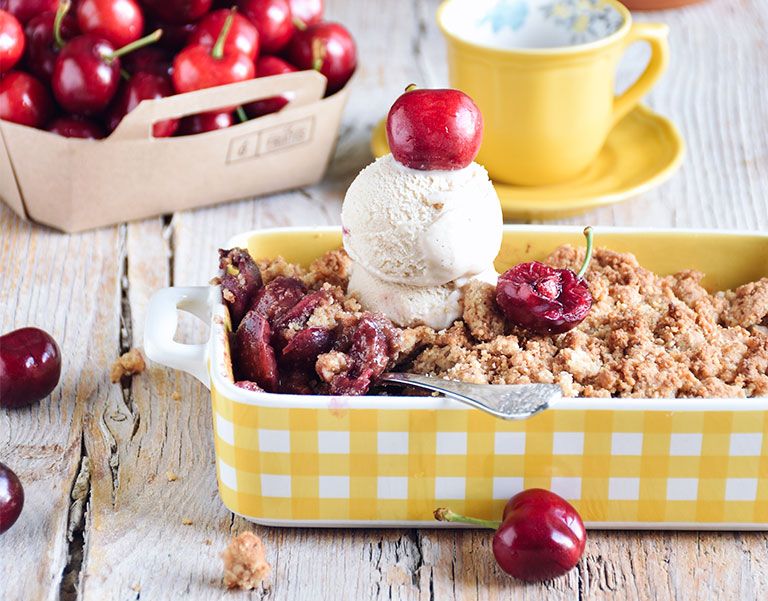 Al juny no poden faltar les cireres, estan al seu millor moment i es poden fer receptes tan com aquesta. Apunta tots els ingredients i passos per fer aquest espectacular crumble amb cirera.