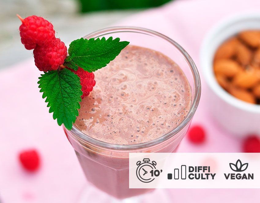 Este batido nos aporta gran cantidad de antioxidates y vitaminas gracias a las frambuesas. La canela le da un toque dulce a el batido y nos ayuda a que la absorción de este sea más lenta. Por lo que la sensación de estar saciado nos durará más tiempo.