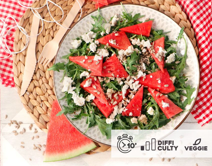 Si eres de los aficionados a la fruta y sobretodo a la fruta de verano, esta receta es para ti. Perfecta para cualquier día de verano, sobretodo cuando el calor apreta y lo último que quieres es encender los fogones o el horno. Las ensaladas son la mejor opción por que puedes añadir mil ingredientes y obtener un plato muy completo. Y además, ¡siempre se puede aprovechar lo que tengamos en la nevera y en la despensa! Hoy hemos probado una mezcla muy curiosa, que de primeras seguro que te llamará la atención y éste será el primer paso para probarla. Una vez de atrevas… seguro que se convierte en un básico durante estas fechas. ¿Quieres saber más sobre esta ensalada? ¡A continuación todos los ingredientes y los pasos para crearla!