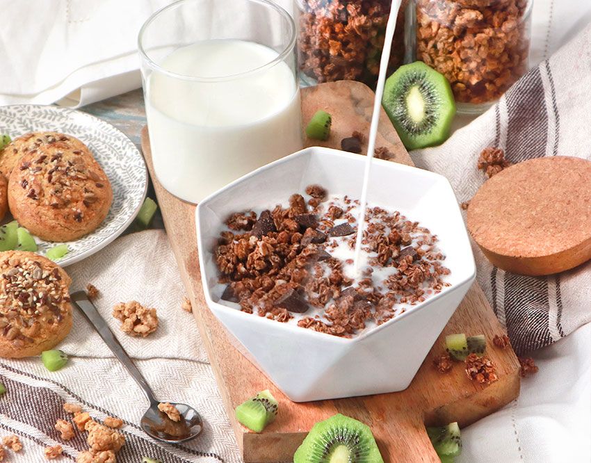 Si para ti el desayuno ideal es dulce, no te podrás resistir a los nuevos cereales Crunchy. En nuestras tiendas y web encontrarás dos sabores: chocolate negro y otro de manzana y canela. ¿Ya sabes con cual te quedarías? Cualquiera de los dos estarán riquísimos con leche o con tu bebida vegetal preferida. Y sobretodo, ¡acuérdate de completar tu desayuno con fruta fresca!