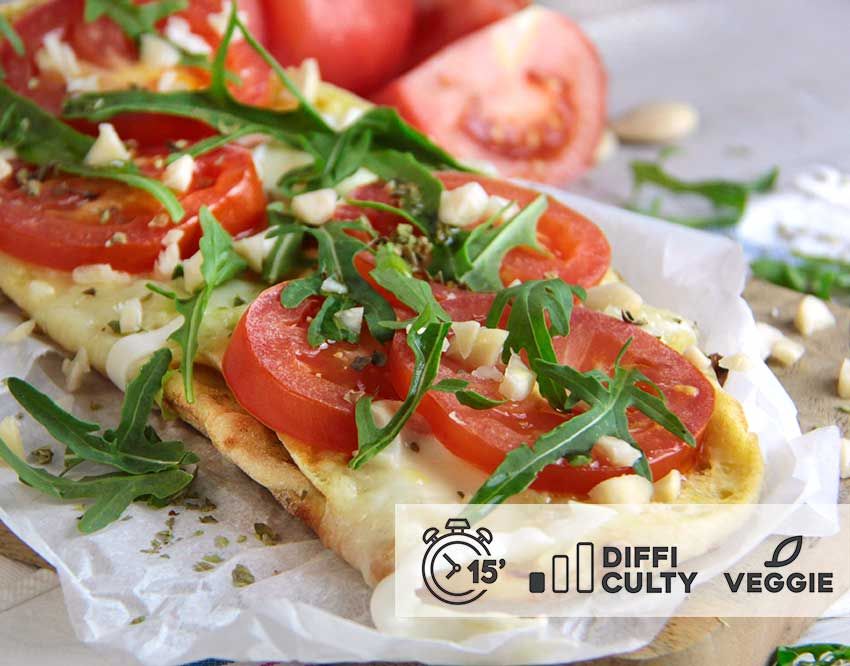 Dentro de una alimentación variada y equilibrada tenemos que añadir alimentos de todo tipo, así que nada de criminalizar a la pizza! Siempre mejor si la hacemos en casa, de este modo sabemos exactamente lo que estamos comiendo y, además, podemos añadir los ingredientes que más nos gusten. En nuestra receta utilizamos verduras como la rúcula y el tomate, que le darán un toque fresco. La mozzarella de búfala le dará el punto italiano y las almendras la harán más crujiente! Buenísima os lo aseguramos.