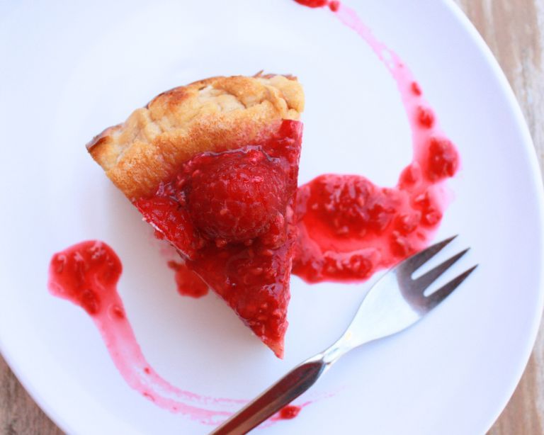 Por último, dejar enfriar unas 3-4h a temperatura ambiente, desmoldar y servir, añadiendo las frambuesas por encima.