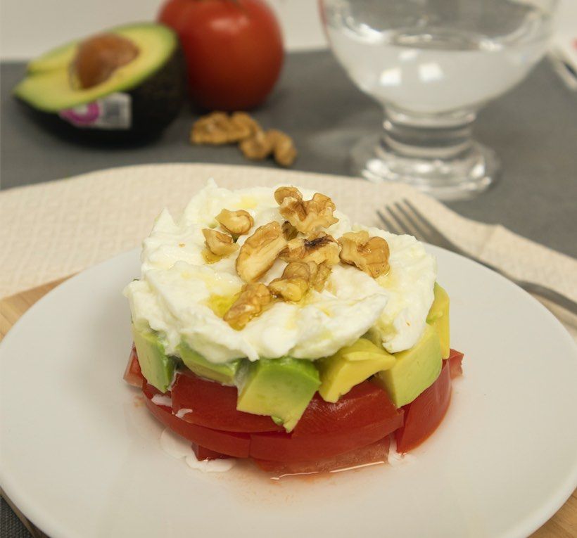 ¡Con un molde para emplatar y tres ingredientes tendrás un timbal de ensalada especial Caprese en un momento! Y aunque la receta tradicional no lleva aguacate, nuestros aguacates Cal Fruitós están siempre tan buenos que no hemos podido evitar añadirlos y hacer nuestra versión de la ensalada Caprese.